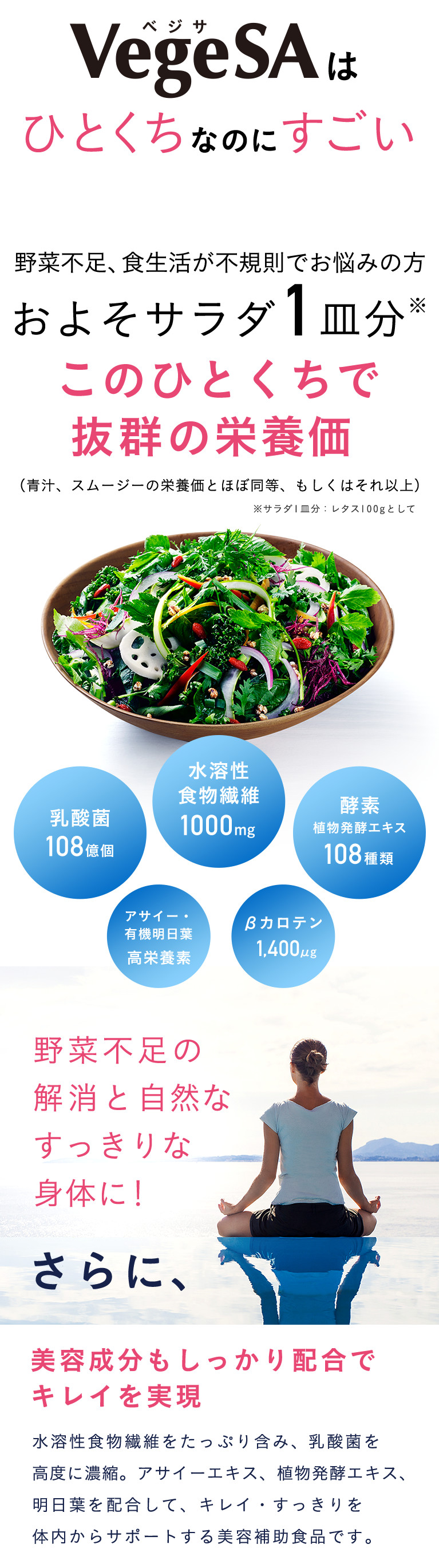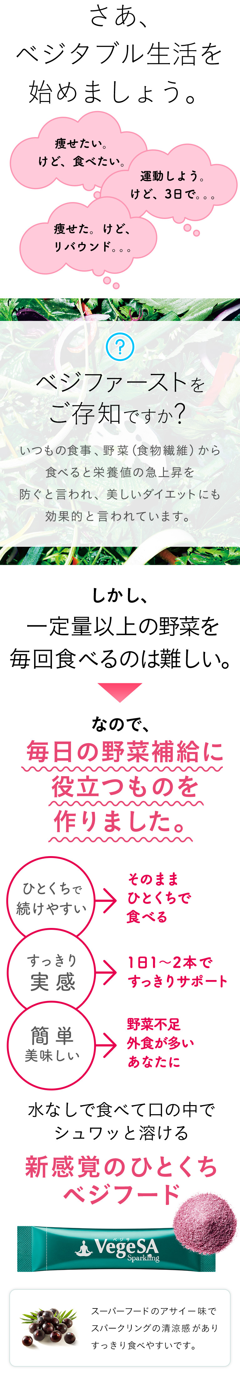 さあ、すっきり、キレイ!VegeSAでベジタブル生活を始めましょう。
